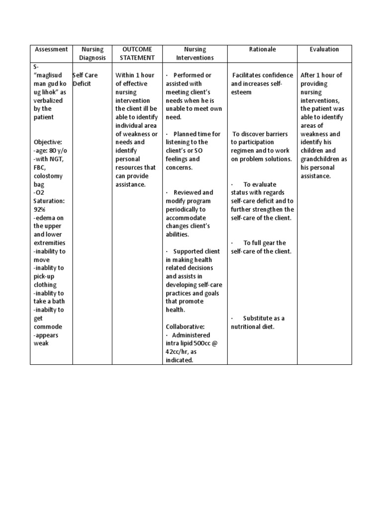 Self Care Deficit Nursing Diagnosis And Nursing Care Plan Nursestudy Net